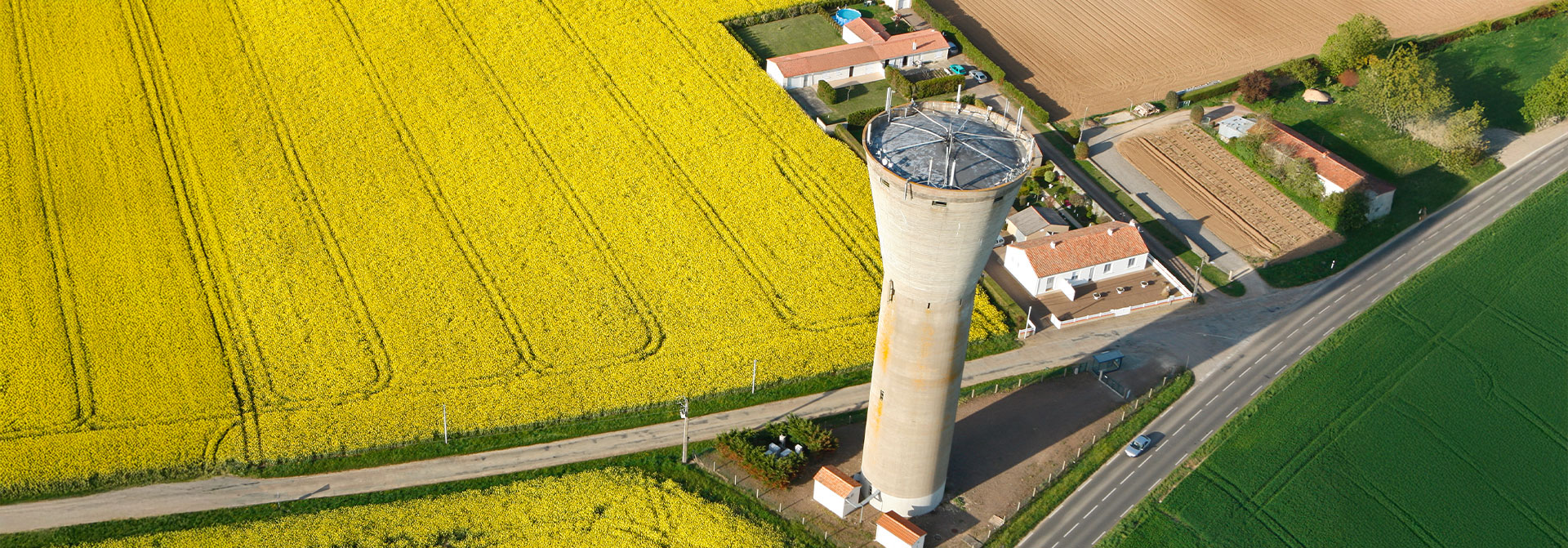 The Kulmino water tower at Notre-Dame-de-Monts in the Vendée is both a unique tourist attraction and an essential link in the drinking water supply chain. Its impressive 5,000 m³ tank ensures daily water distribution to several coastal and island communities: Saint-Jean-de-Monts, Notre-Dame-de-Monts, La Barre-de-Monts, Île de Noirmoutier and Île d’Yeu.